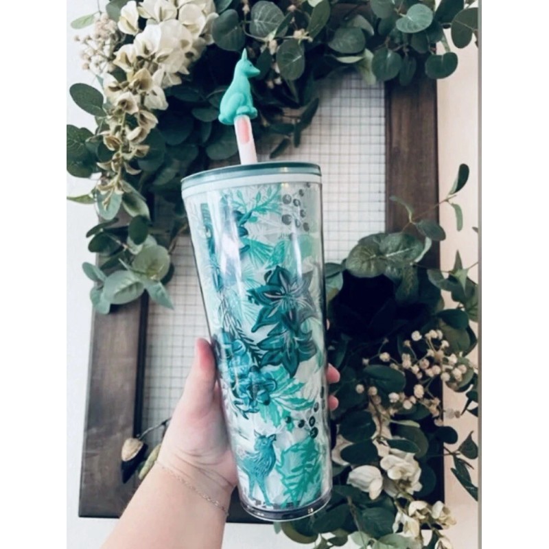 Starbucks Fox Straw Topper Cup Enchanted Forest Cold Tumbler Venti 24oz New 2022