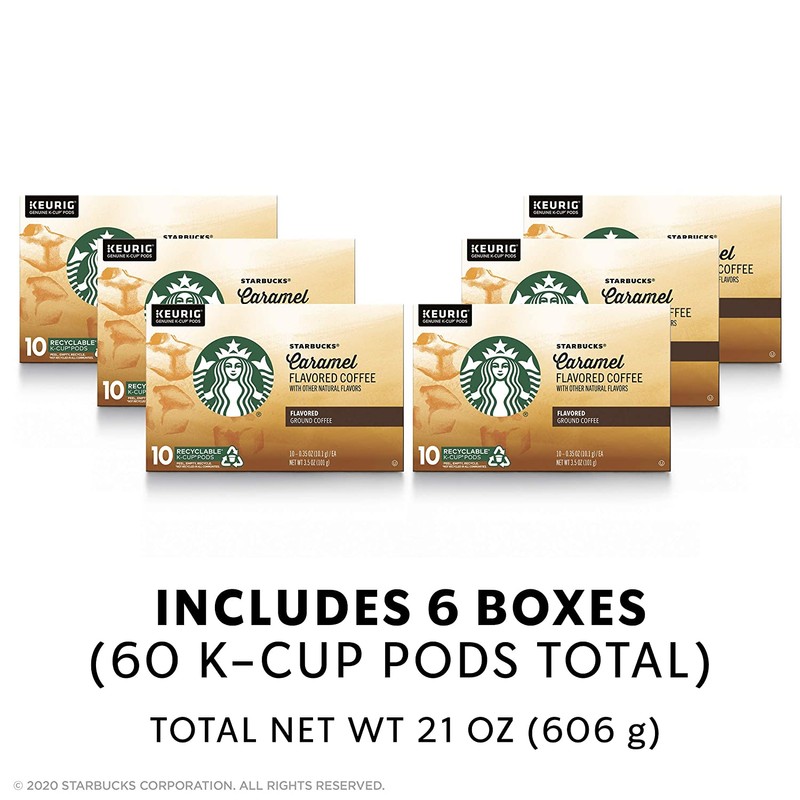 Starbucks Medium Roast K-Cup Coffee Pods — Caramel for Keurig Brewers — 6 boxes (60 pods total)