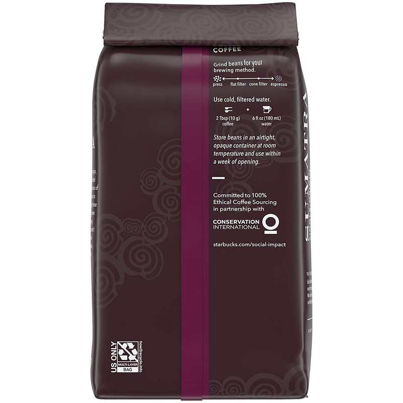 Starbucks sumatra coffee, whole bean, 12-ounce bags (pack of 3) has a full,
