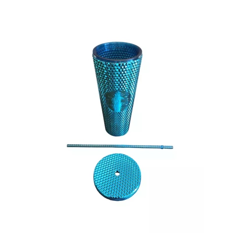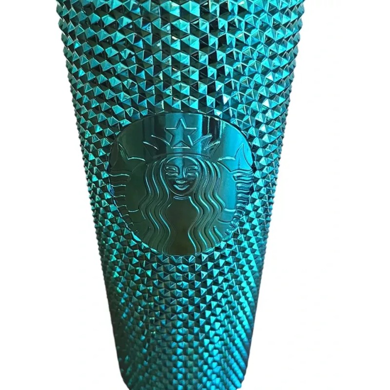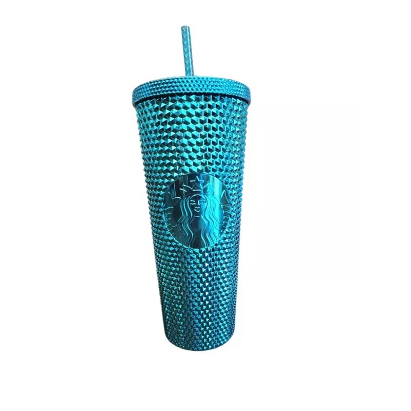 Starbucks Summer 2023 Metallic Chrome Teal Blue Bling Studded 24 oz. Tumbler