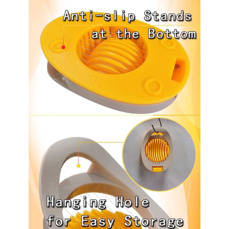 - EASY TO CLEAN AND STORE-Since the wires are so slim that almost no eggs or hams will stick on the wires after slicing,which conveniences the cleaning work.You will find it so easy to clean after use.Moreover,we specially add one hanging hole at the end.Just store it with the hole to convenience the next use instead of looking for it anxiously!
