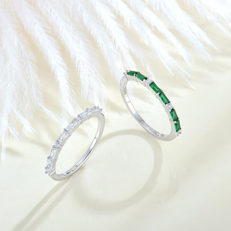 STARCHENIE 925 Sterling Silver Thin Eternity Ring for Women Half Baguette Band Birthstone Stackable Rings Size 5-10, Metal, Cubic Zirconia