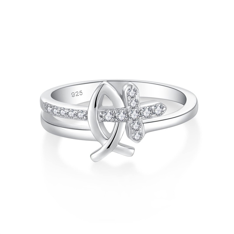 STARCHENIE Cross Ring 925 Sterling Silver Christian Fish Ichthus Ring Size 5