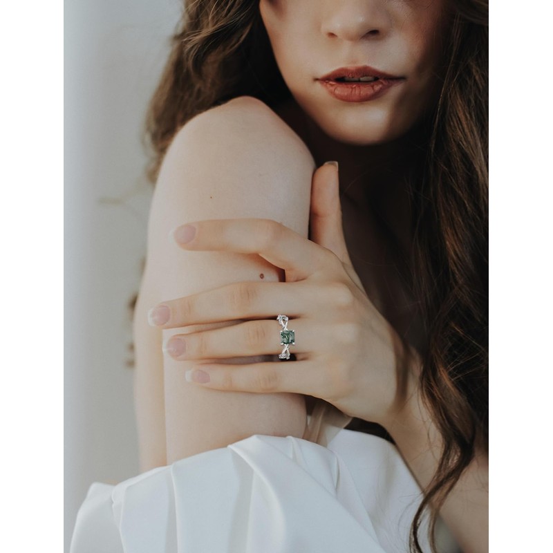 STARCHENIE Moss Agate Engagement Ring 925 Sterling Silver Twisted Infinity Ring Princess-Cut Wedding Ring for Women Size 10