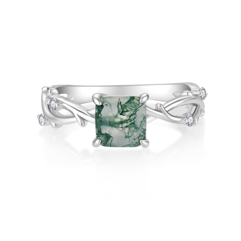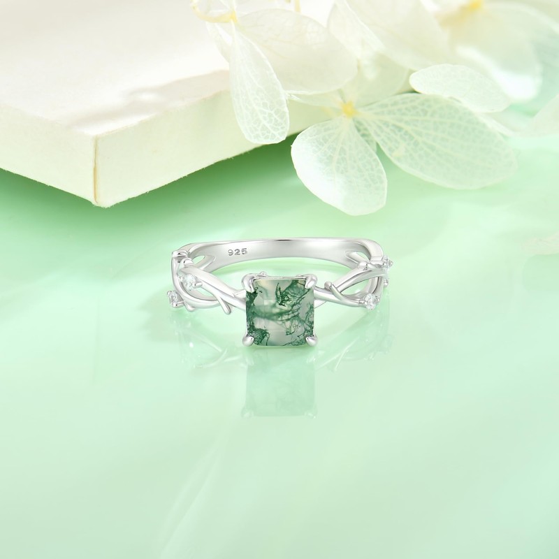- EXQUISITE DESIGN: Classic and Delicate Ring Set with 6*6 Princess-Cut Moss Agate. A Great Every Day Ring for You!