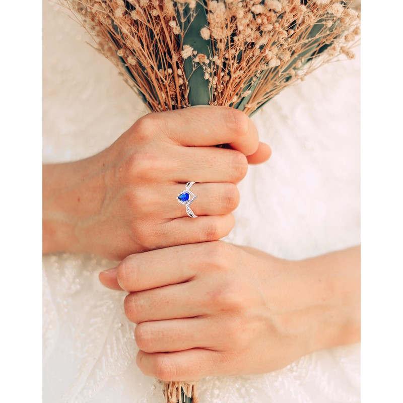 STARCHENIE Pear Shaped Engagement Ring 925 Sterling Silver Blue Sapphire Wedding Ring for Women Bridal Size 8