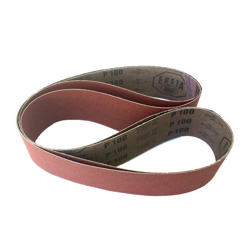 These 2-1/2 Inch X 48 Inch cloth sanding belts are made with premium German engineered Starcke material. All our sanding belts are made custom to order in grits 24 - 400. This Aluminum Oxide abrasive grain features Poly "Y" weight back on coarser grits and Cotton "X" weight backing on all other grits. These sanding belts feature a bi-directional butt joint for a consistent and smooth finish as well as extended belt life. This premium high performance abrasive is excellent for all purpose belt sanding - and specifically for use on Aluminum, Steel, Composite, Hardwood, and Softwood.