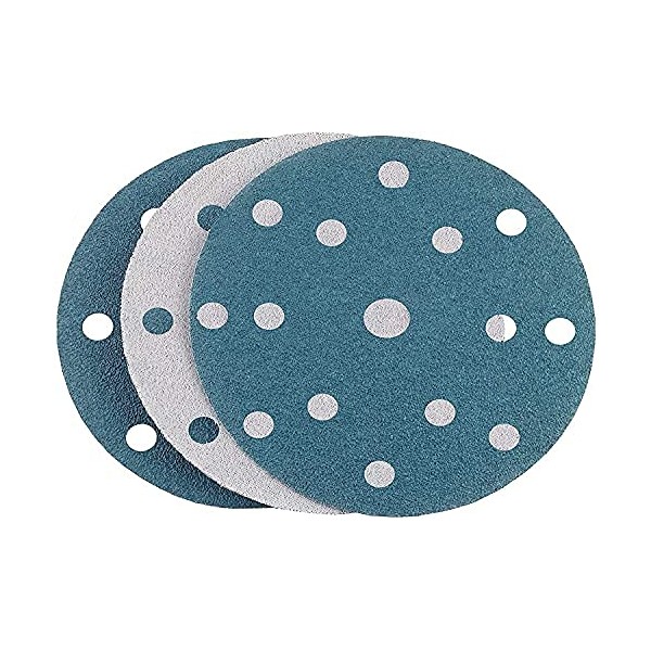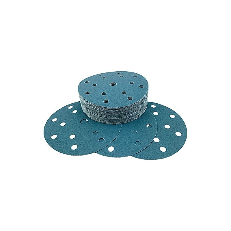 - 6" x 15 hole discs made from premium Aluminum Zirconia/Aluminum Oxide blend abrasive grain