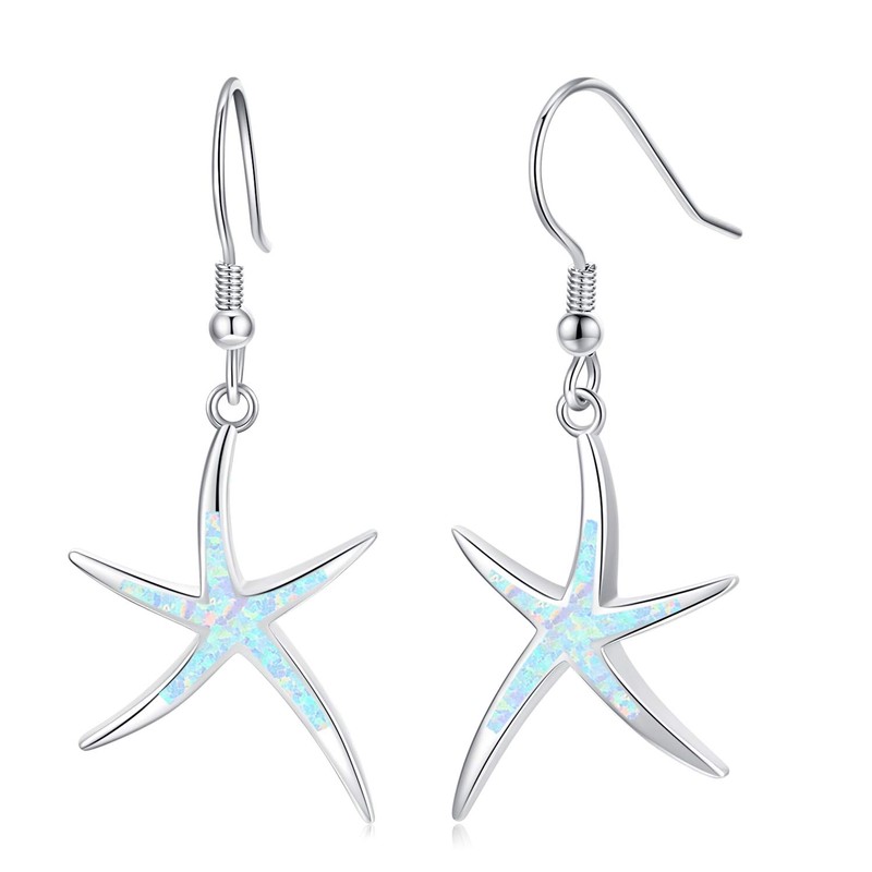 Starfish Earrings 925 Sterling Silver with Opal Fish Hoop Earrings Nautical Hawaii Beach Earrings Starfish Jewellery Gifts for Women Starfish Lovers, Sterling Silver, Opal
