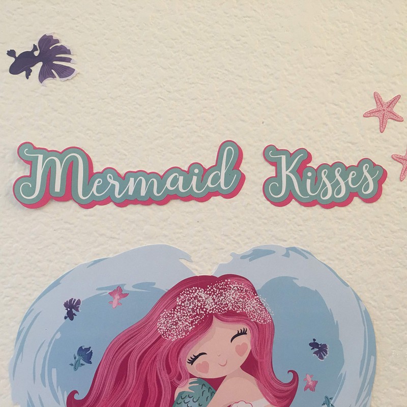 - Images include a mermaid in a heart-shaped design with fantail fish, starfish, and "spellout" Mermaid Kisses and Starfish Wishes
