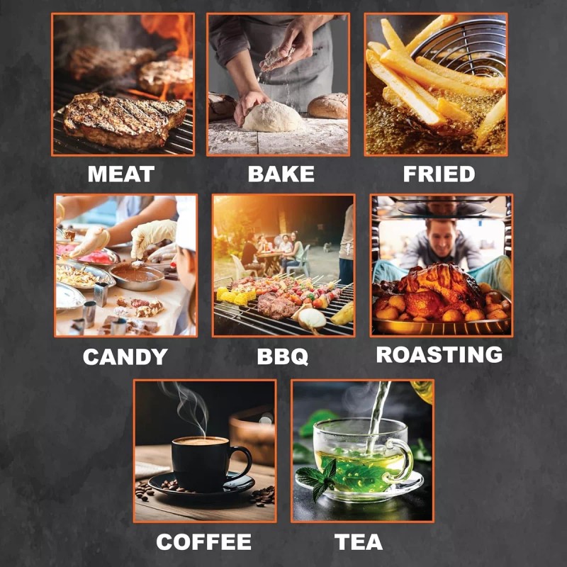 Amplio rango de medición de bistec, barbacoa, mermelada, azúcar o cerveza helada, desde muy caliente hasta muy frío, lo que sea. Con una medición que va de -50c a 300 C or -58 F a 572f, nuestro termómetro para alimentos sirve para casi todas las ocasiones culinarias, ya sea dentro de la cocina o al aire libre en la parrilla. Las pautas de temperatura en el paquete lo ayudan a obtener el punto deseado de cocción de sus alimentos.