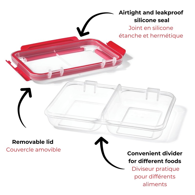 Starfrit Easy Lunch Rectangular Divided Container - 16oz/473ml - Airtight & Leakproof - 4-Sided Locking Lid