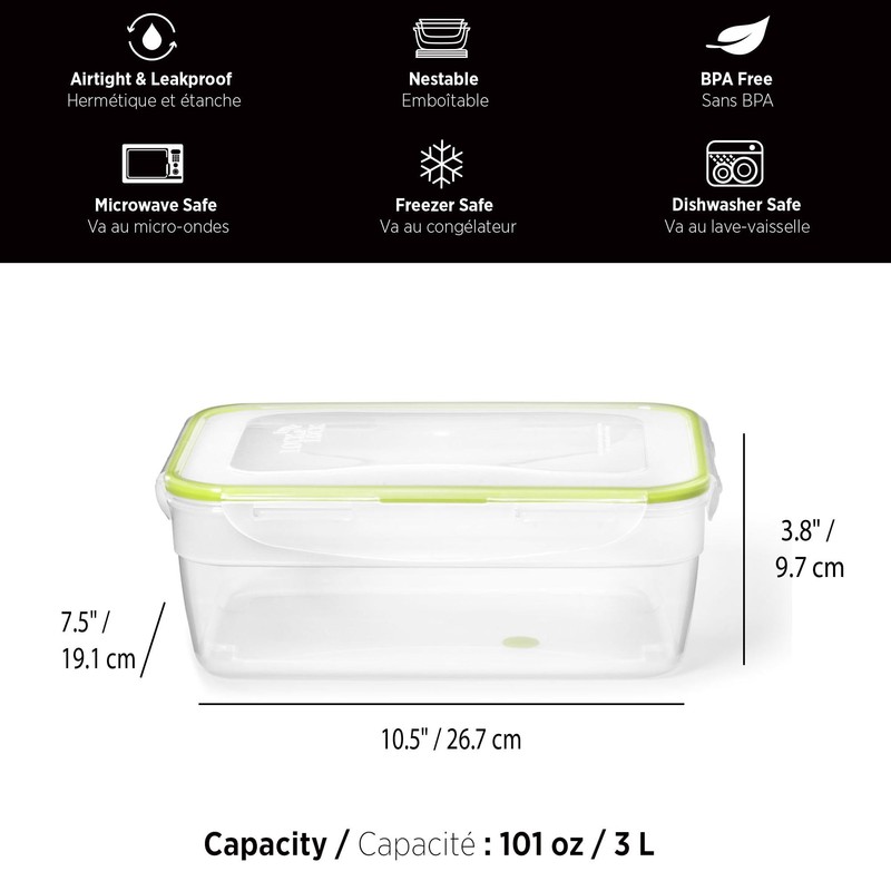 Starfrit LocknLock Easy Match Plastic Container - 101oz/3L - Airtight, Leakpr...