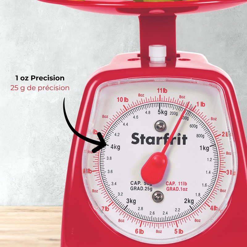 Starfrit Mechanical Kitchen Scale - Precise Dual Measurement - 11lb/5kg Capacity - Red