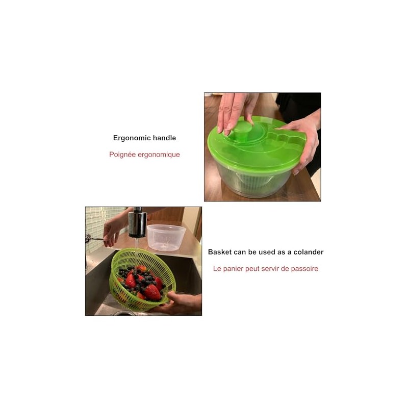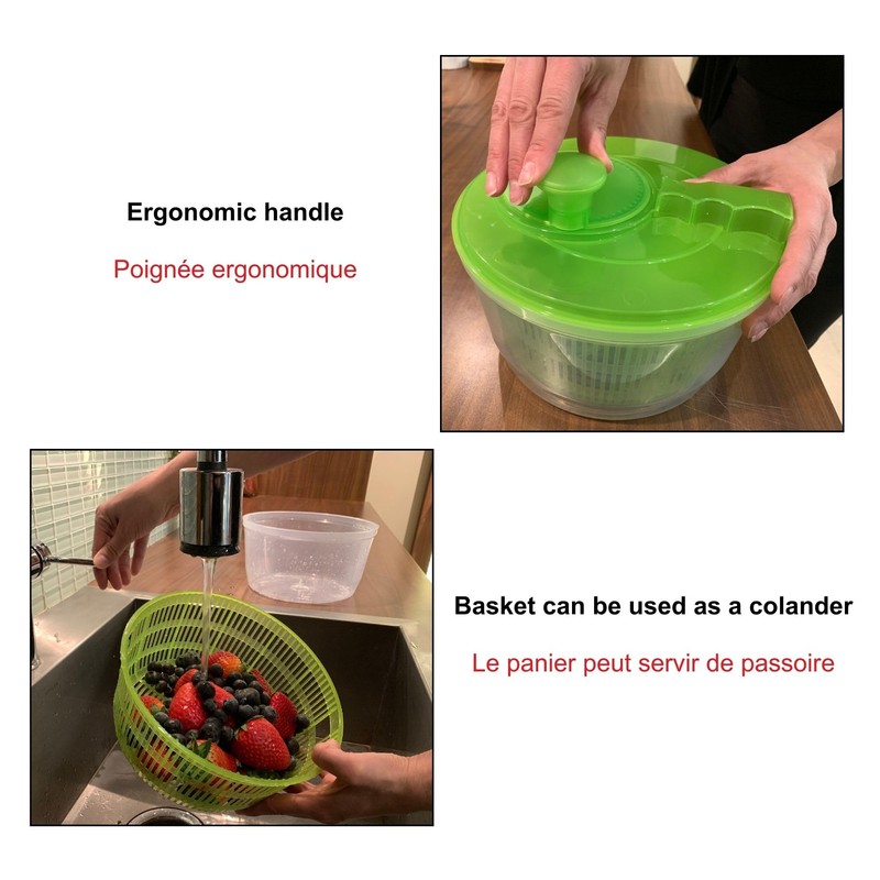 - 4.2QT (4L) salad spinner removes excess water for crisp greens