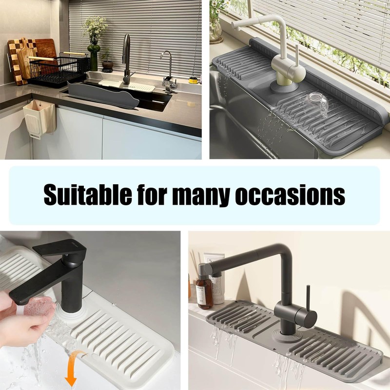 - Practical Design: In addition to the splash proof function, this silicone sink mat can also be used as a soap holder, equipped with 0.83 inch raised fins to place sponges or water cups, and the thickened design will not let them slide
