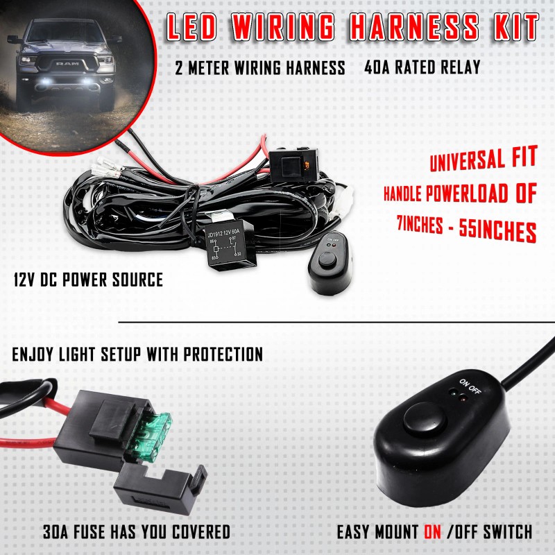 Stark 26" 120W CREE FLOOD SPOT LED Detachable Light Bar Off-Road + Relay - 6K White