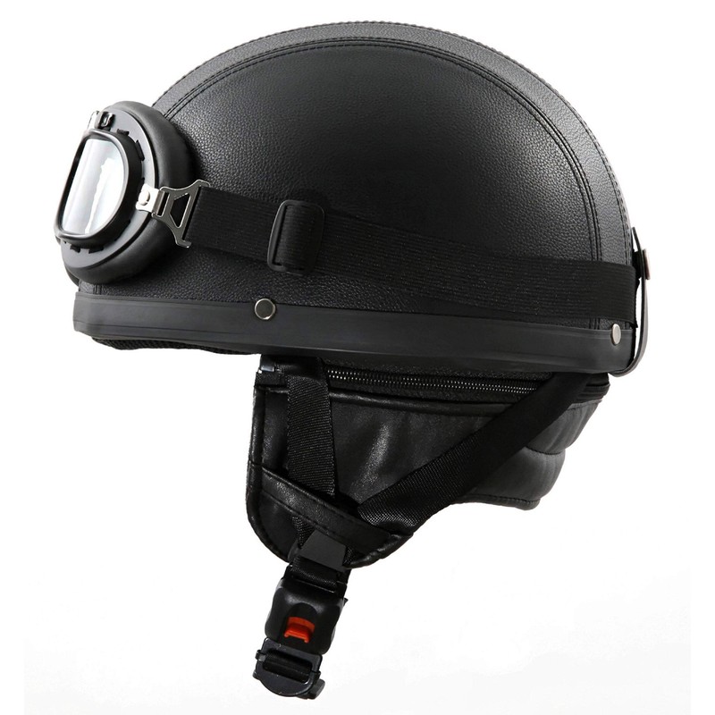 Stark H110 Leather Retro Oldtimer Helmet with Goggles Size S - XL