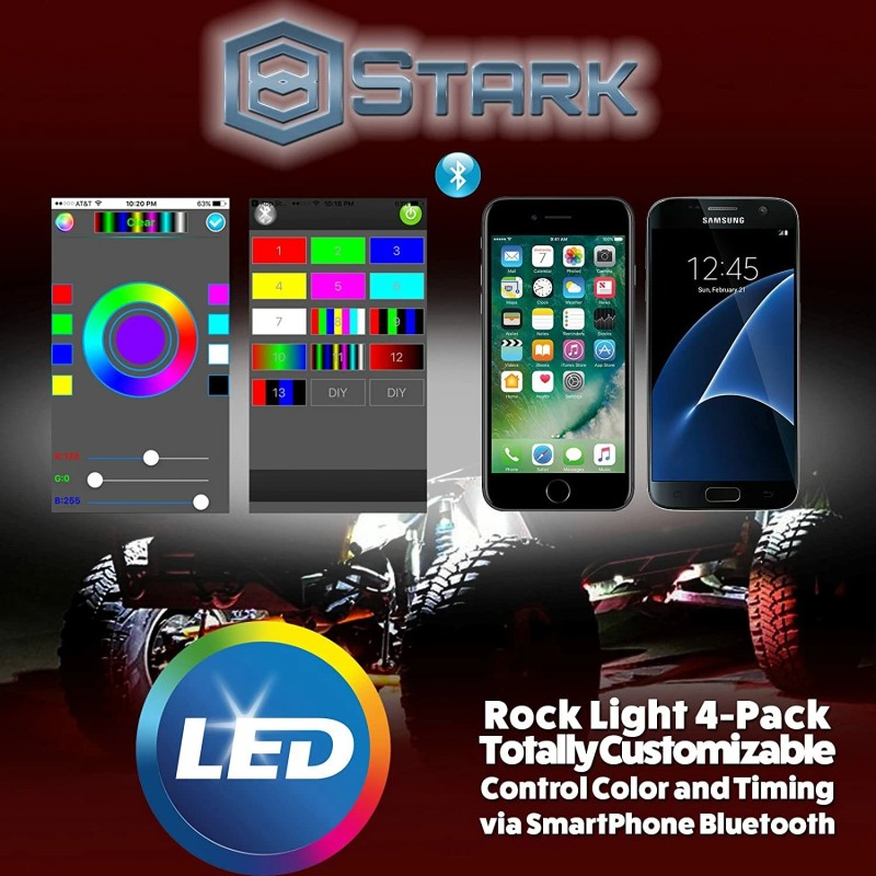 STARK INDUSTRIES 4 Pods RGB Rock Lights Bluetooth Control Underglow Offroad Lighting Kit