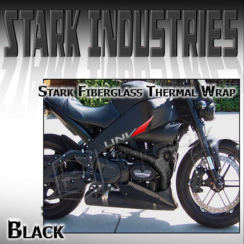 Stark Industries - Black 2" x 50ft Fiberglass Exhaust Wrap with Stainless Steel Ties (11.8in) Header Wrap Heat Shield Sleeve for Cars and Motorcycle - 2-PACK