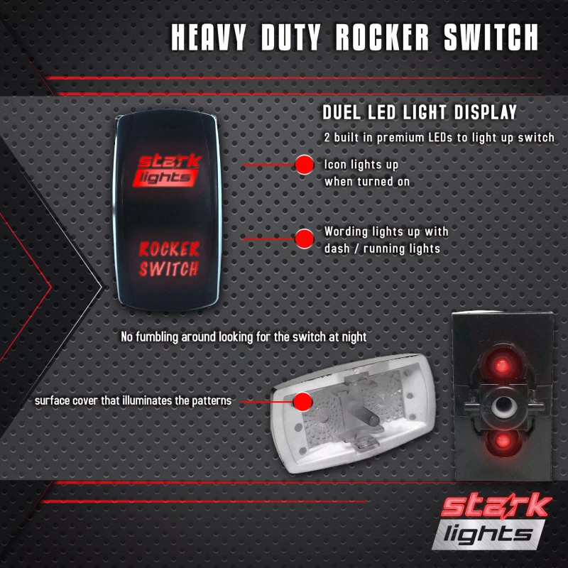 Stark WHITE Laser LED Rocker Switch 5 Pin Dual Light 20A 12V ON / OFF - GORILLA MODE