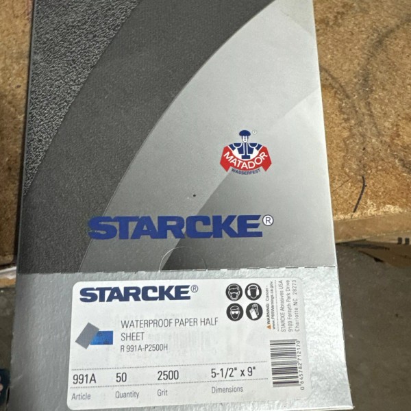 starke abrasives 2500 grit wet dry paper 5 1/2" x 9" sheets 50 sheets per box.