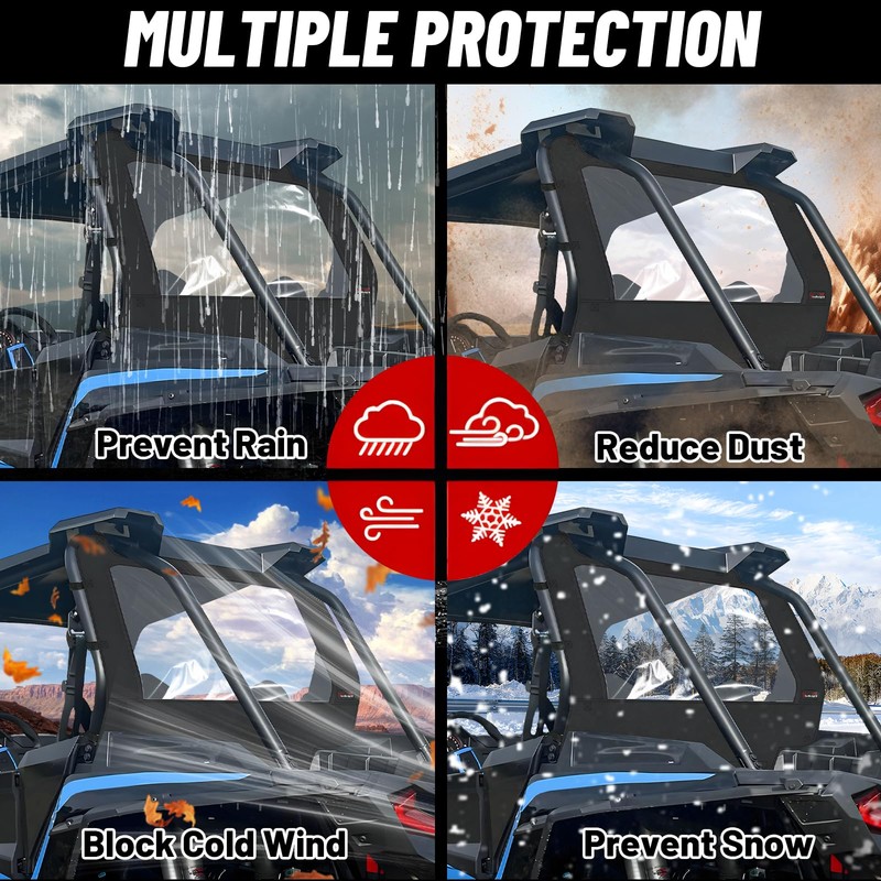 - 🛡️【Durable Fabric】The rzr window is made of durable Oxford fabric with anti-water PU coating, and thickened PVC mid-transparent panel can avoid cracks or tear in high wind. Besides, the UV coating surface will protect the front seat and dust panel from fading under the sun