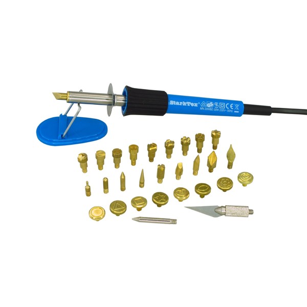 - Includes: 1 pyro pen 30w, 8 drawing/shading tips, 20 branding/stamping tips, craft cutting tip and safety stand