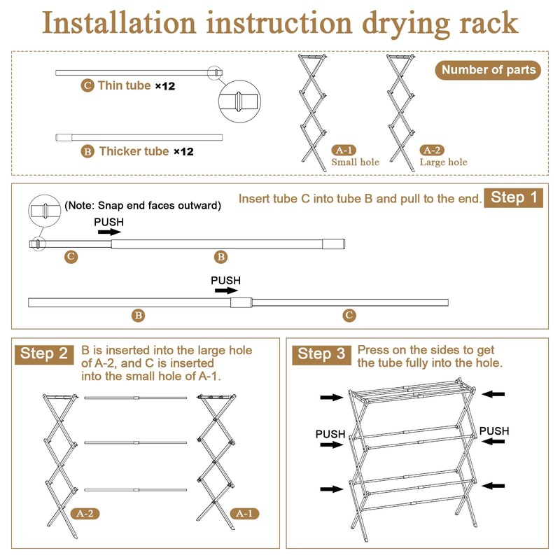 - Foldable Design: This drying rack can be folded to a smaller size when not in use, making it easy to store and saving space in the room.