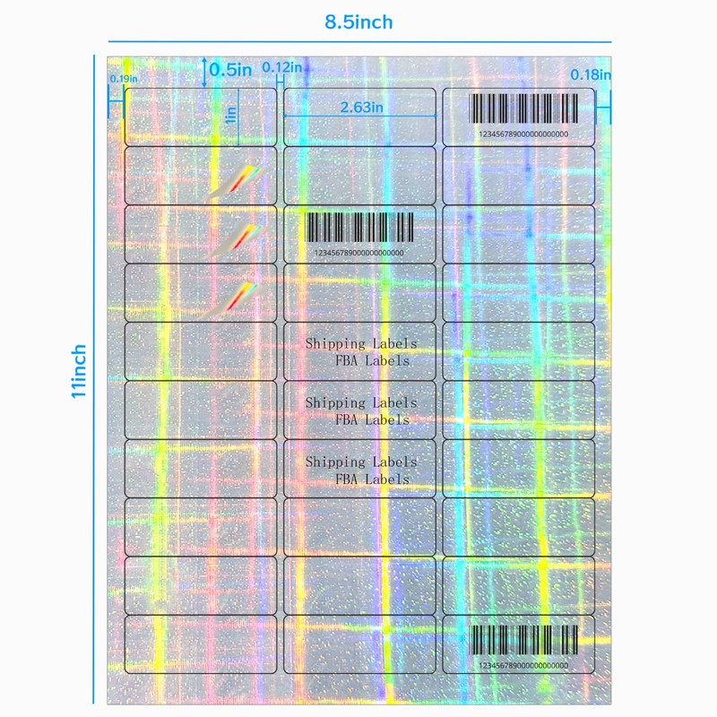 STARLIBOO 1" x 2-5/8" Address Labels- Holographic Color Labels Stickers for Laser/Ink Jet Printer mailing Labels 8.5"×11"- Holographic Silver 30 per Sheet
