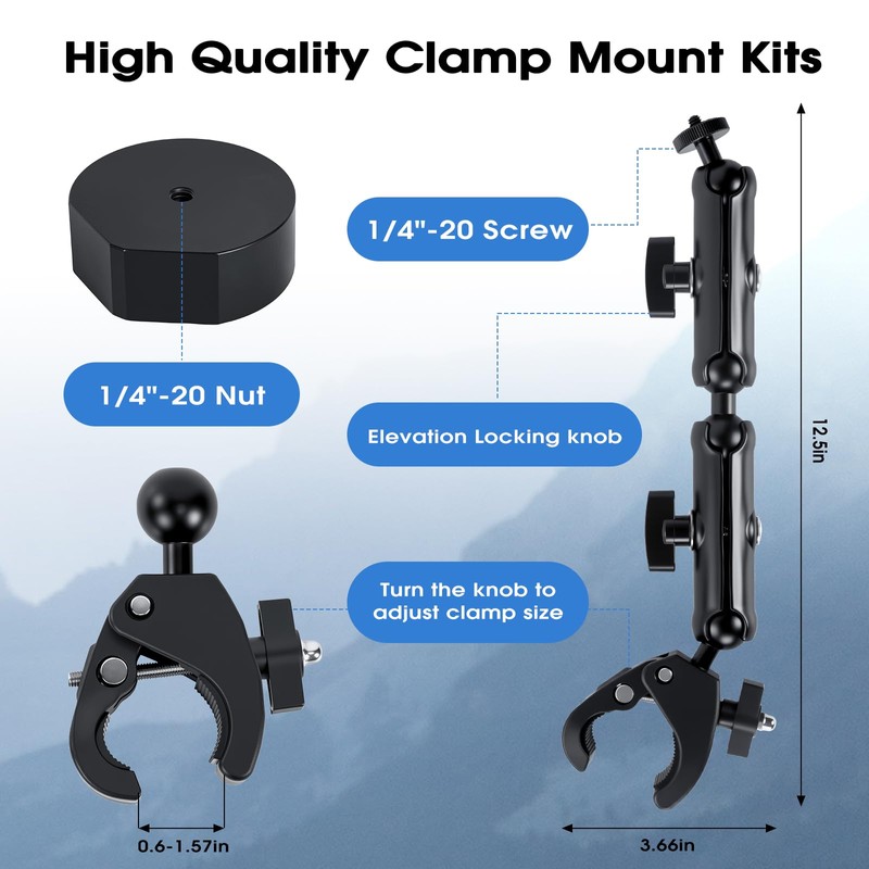 - Compact and Portable: This adjustable clamp mount is designed in small size, easy to carry and install, Made of high quality aluminium alloy material. It is very convenient for outdoor or home use, ideal for camping or traveling