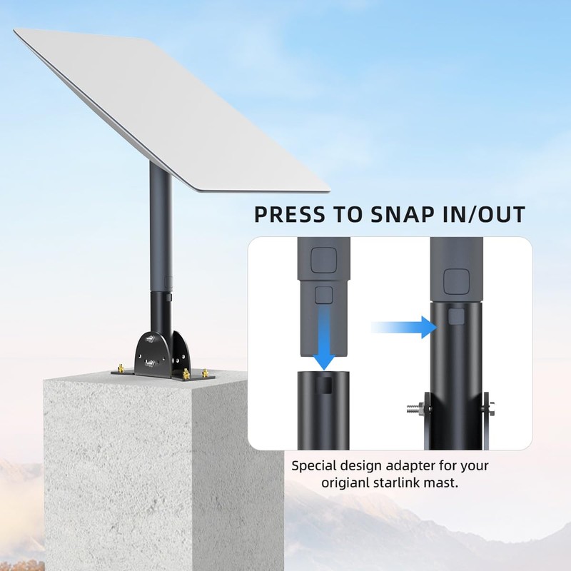 - 【The same design as the starlink official original Pivot mount】It’s an excellent substitute which have Clip Window to lock the starlink dish mast and Fixed Bracket to Support the starlink dish,economical and affordable to meet your needs