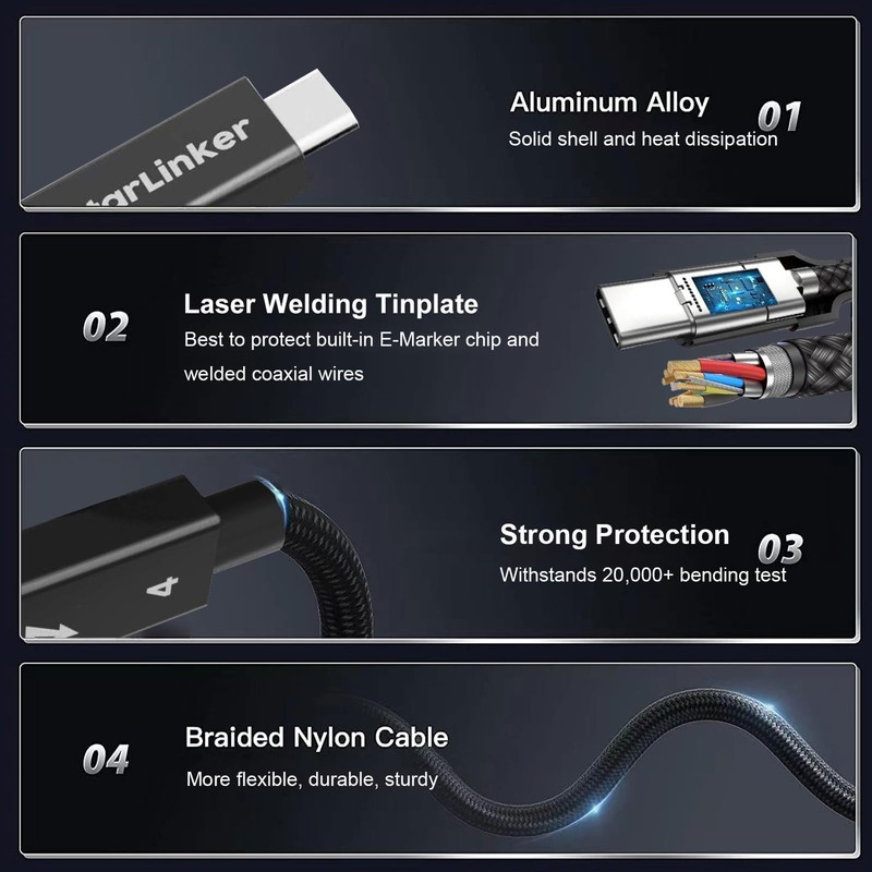 - 【What You Get】StarLinker Thunderbolt 4 USB-C Cable, welcome guide, our worry-free 24-month warranty, and friendly customer service.