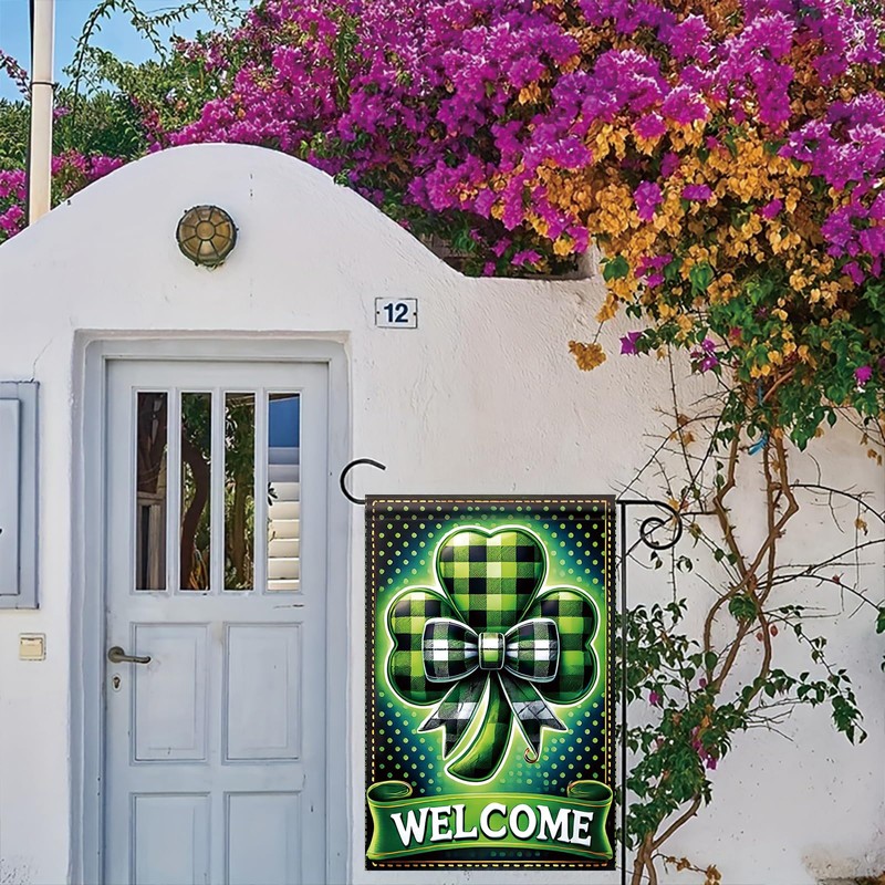- Package includes: The Lucky Clover garden flag contains one shamrock St. Patrick's Day garden flag (note: flag poles are not included). This double-sided 12x18-inch flag makes a unique and inviting addition to your yard, welcoming guests in a cheerful way.