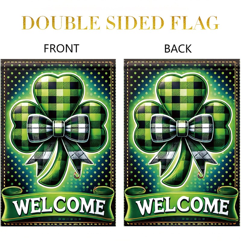 - Reliable material: The shamrock welcome St. Patrick's Day garden flag is made from Polyester with double-sided printing and high-strength double stitching. It is resistant to sunlight, rain, and snow, ensuring the colors stay vibrant and unfaded for long-lasting use. The flag can be cleaned by hand or machine washing.