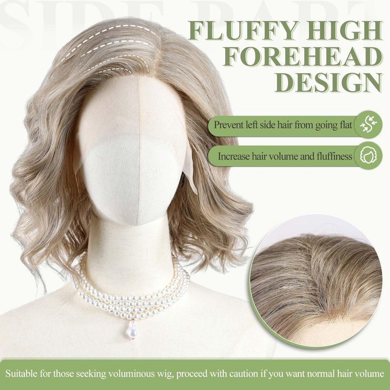 starluck Side Part Wavy Wig Ash Blonde Layered Lace Front Bob Wig 14 Inch Sho...
