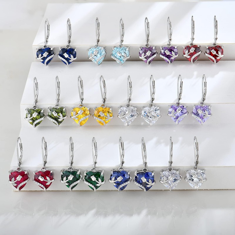 Starnny Women's Earrings Silver 925 Heart Rose Flowers Earrings Hanging Hoop Earrings Dangle 3A Zirconia Jewellery for Women, Sterling Silver, Cubic Zirconia