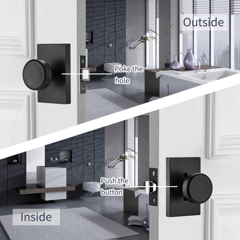 • 【Privacy Function】The push button function of this privacy door knob can be Locked or unlocked interior by a push button, exterior knob can be released button by tools if emergency. Interior knob turns to release lock always.