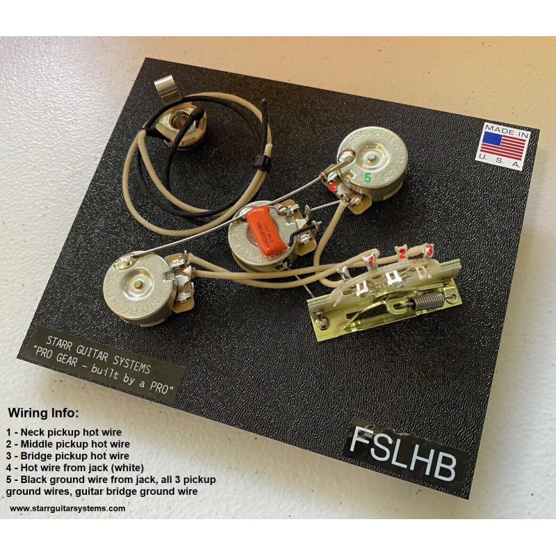 STARR GUITAR SYSTEMS replacement BLENDER electronics for LEFTY Fender Stratocaster! Each set is assembled, hand wired and soldered in the USA by Dave Starr using premium parts. We use actual CTS left handed pots for the proper taper and control! Upgrade your import Strat electronics, or replace your old worn out parts with these premium replacement units! Simply attach your pickup wires, input jack wires, and bridge ground wire and you are ready to rock! All sets are signed by Dave Starr and have their own serial number.