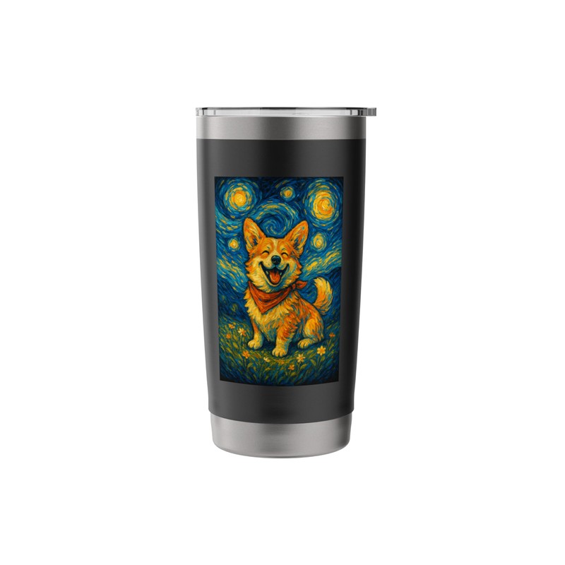 Starry Night Corgi Art Style Dog Painting Design Stainless Steel Insulated Tumbler