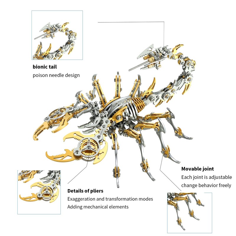 - 【Metal Scorpion Model】: This assembly model is designed based on the scorpion. Each part will have independent packaging and markings, and is assisted by professional DIY tools and instructions to ensure that you can enjoy the fun during the assembly process.