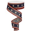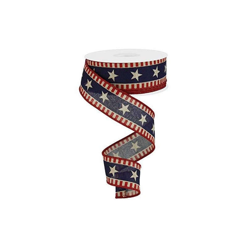 Stars & Stripes Wired Edge Ribbon - 10 Yards (Canvas, Beige, Red, Navy Blue)