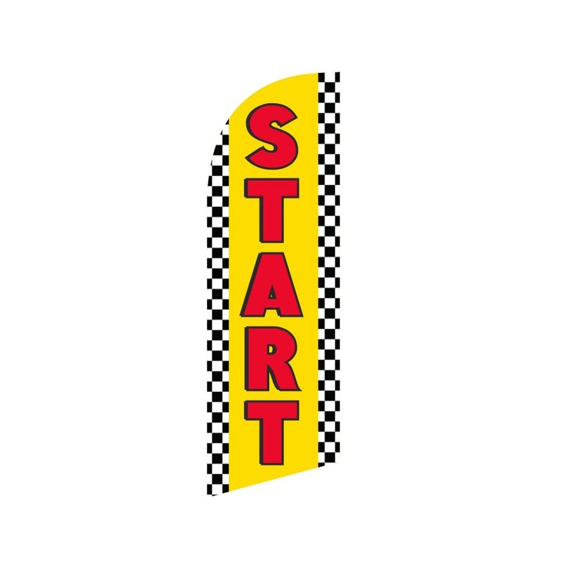 Start Finish and Check-In 6ft Advertising Feather Flags package of 3 Banners for Marathons and Special Events windless Swooper Banner Flags with Complete 8ft Pole Kits and Ground Spikes