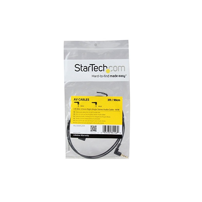 StarTech.com 3 feet Slim 3.5mm Right Angle Stereo Audio Cable - M/M, Black