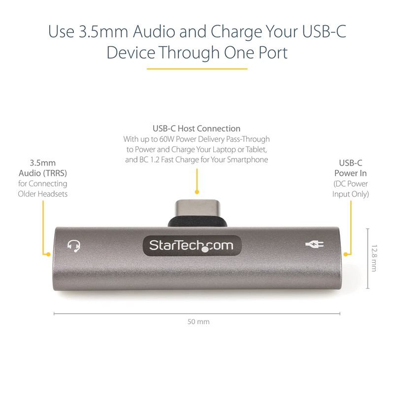 StarTech.com CDP235APDM USB Type-C Earphone Jack Converter Adapter/60W PD Simultaneous Charging/USB-C Audio Adapter/3.5mm TRRS Headphone & Headset Jack/Type-C Compatible Smartphones, Tablets, Laptops