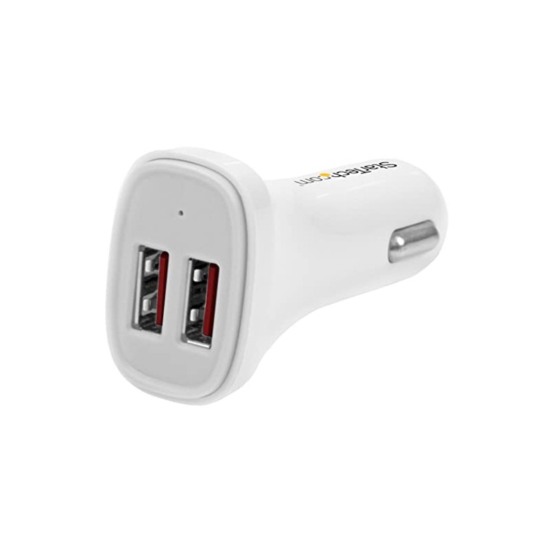 StarTech.com Dual Port USB Car Charger - 24W/4.8 - White - 2 Port USB Car Cha...