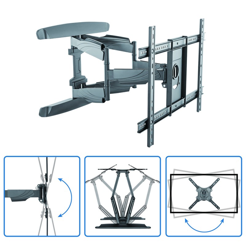- WIDE RANGE OF MOTION: Articulating & adjustable TV wall mount offers +/-90° swivel, +2/-15° tilt & +/-5° LCD screen level adjustment without the use of additional tools to ensure display is level