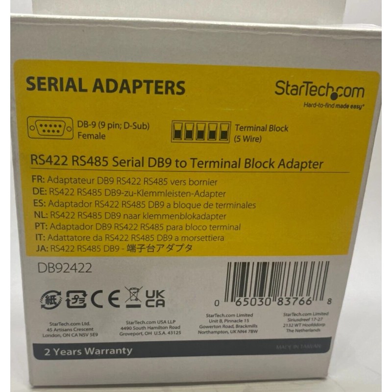 StarTech Item #DB92422  RS422 RS485 Serial DB9 (DB-9 9 Pin D-Sub Female) to Terminal Block Adapter (5 Wire) - Prepaid Shipping