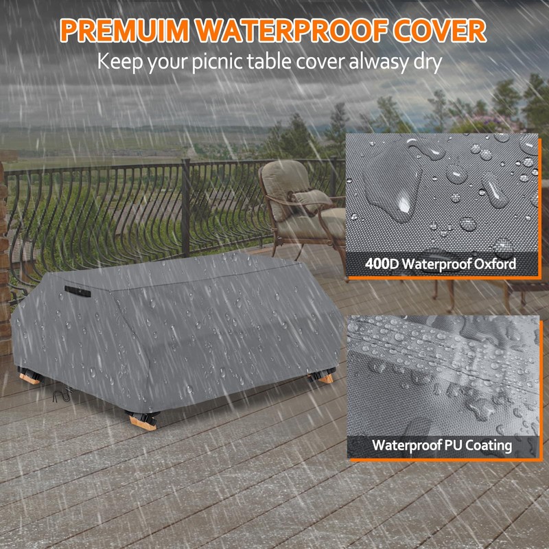 - 【Durable & Waterproof】The picnic table covers is made of high-density 400D oxford fabric,providing waterproof dustproof sunscreen protection, keeping it clean and dry year-round.