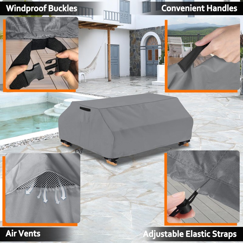 - 【Mesh Vents】 Air vent permit air circulation, deterring condensation build-up, freezing, reducing internal humidity.The outdoor picnic table covers features two handles for easy application and removal.